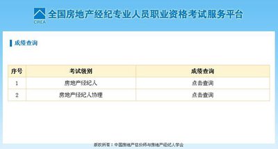 网站查询。考生可登录全国房地产经纪专业人员职业资格考试服务平台http://182.92.48.3/score.html 查询。