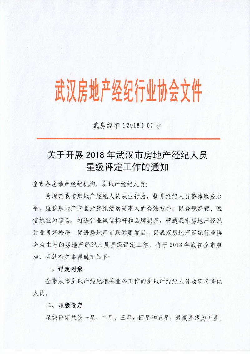 关于开展2018年武汉市房地产经纪人员星级评定工作的通知