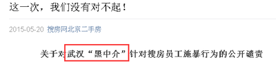 附:搜房北京二手房微信平台发布《这一次,我们没有对不起》中涉及中伤我市部分中介机构的言论截图